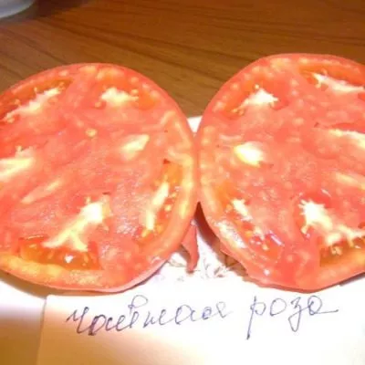 Мякоть многокамерная, мясистая, сахаристая на изломе, с небольшим количеством семян. Вкус классический «помидорный», сладкий с едва уловимой приятной кислинкой, что делает плоды универсальными в использовании. Плоды первой и второй кисти часто бывают самыми крупными и могут достигать заявленных 400 граммов.