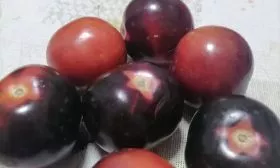 - Для сока и соусов. Сок получается густым, насыщенного темно-красного цвета с оригинальным вкусом. Однако при приготовлении моносоуса из-за антоцианов конечный продукт может приобретать не совсем привычный темно-коричневый или фиолетовый оттенок. Для сохранения классического красного цвета их часто смешивают с желтыми или красными томатами.