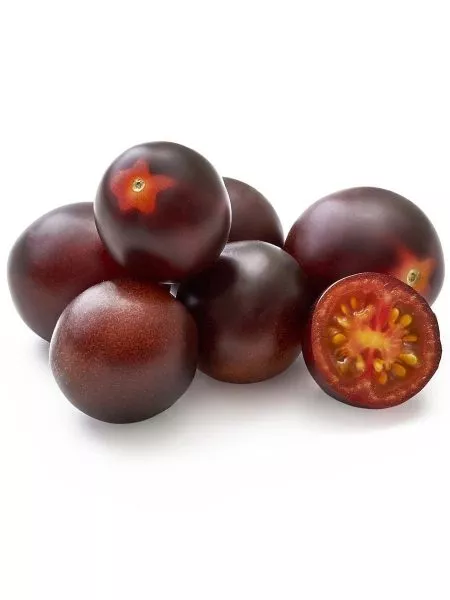 Мякоть в полной зрелости сочная, нежная, темно-красного цвета. Семенных камер две, они небольшие и заполнены мякотью с небольшим количеством семян. Вкусовой профиль сложный: гармоничное сочетание выраженной сладости с легкой, освежающей кислинкой и многогранным фруктово-пряным послевкусием, что является визитной карточкой томатов с антоциановой пигментацией.