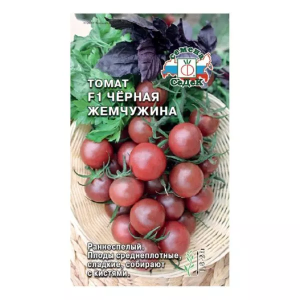 Для куста характерны длинные междоузлия и крепкие побеги. Листва обычного типа, насыщенного темно-зеленого цвета. Первое соцветие у сорта Черная жемчужина закладывается довольно высоко – обычно после 9-10-го листа, а последующие формируются через каждые три листа.