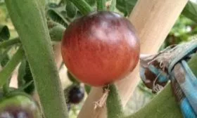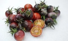 Введение антоцианов в плоды томата — относительно новое направление в селекции. Черника относится к так называемым биколорным томатам, где темно-фиолетовый, почти черный оттенок, создаваемый антоцианами, накладывается на классический красный пигмент (ликопин). Эта окраска является генетически закрепленным признаком, а не просто реакцией на ультрафиолет.