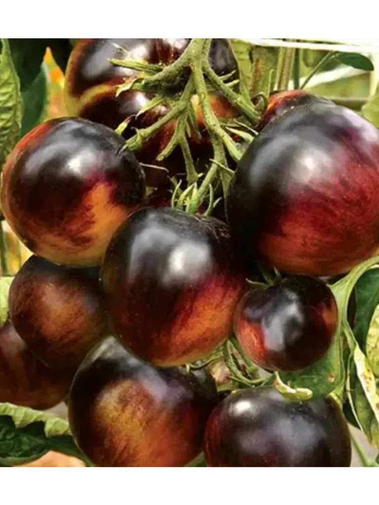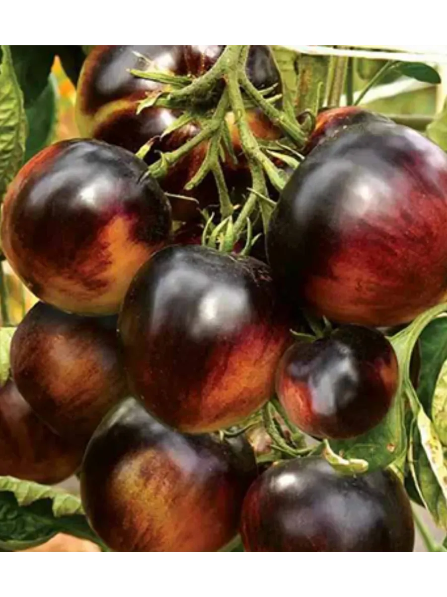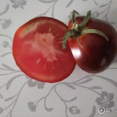 Мякоть обладает плотной, мясистой структурой (что характерно для плодов массой 150-180 граммов) и выраженным ароматом. Ключевой особенностью является влияние антоцианов — природных пигментов, ответственных за темно-бордовую с фиолетовым оттенком окраску. Эти вещества не только окрашивают кожуру и часть мякоти у плодоножки («плечики»), но и могут придавать вкусу едва уловимую, пикантную пряную ноту. Многие дегустаторы описывают ее как легкий сливовый или ягодный оттенок, что делает вкус более сложным и интересным по сравнению с традиционными красными томатами.