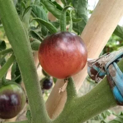 Введение антоцианов в плоды томата — относительно новое направление в селекции. Черника относится к так называемым биколорным томатам, где темно-фиолетовый, почти черный оттенок, создаваемый антоцианами, накладывается на классический красный пигмент (ликопин). Эта окраска является генетически закрепленным признаком, а не просто реакцией на ультрафиолет.