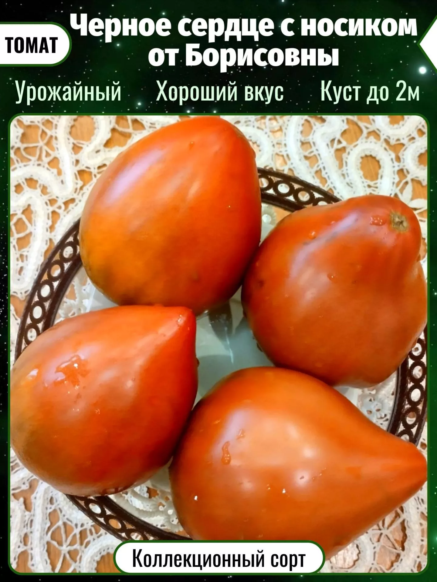 Черное сердце с носиком от Борисовны — это сорт (не гибрид F1), что принципиально важно для садоводов. В отличие от гибридов, его семена сохраняют родительские свойства, поэтому их можно собирать самостоятельно для посева в следующем сезоне.