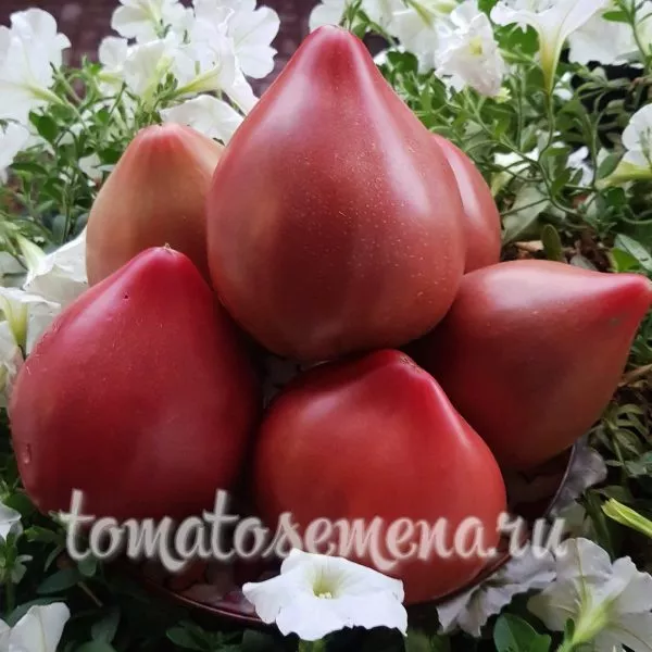 Главная отличительная черта — уникальная форма плода: сердцевидная с четко выраженным острым «носиком» на вершине. У основания часто наблюдается заметная ребристость. В фазе технической спелости томаты имеют насыщенный зеленый цвет с темным пятном у плодоножки.
