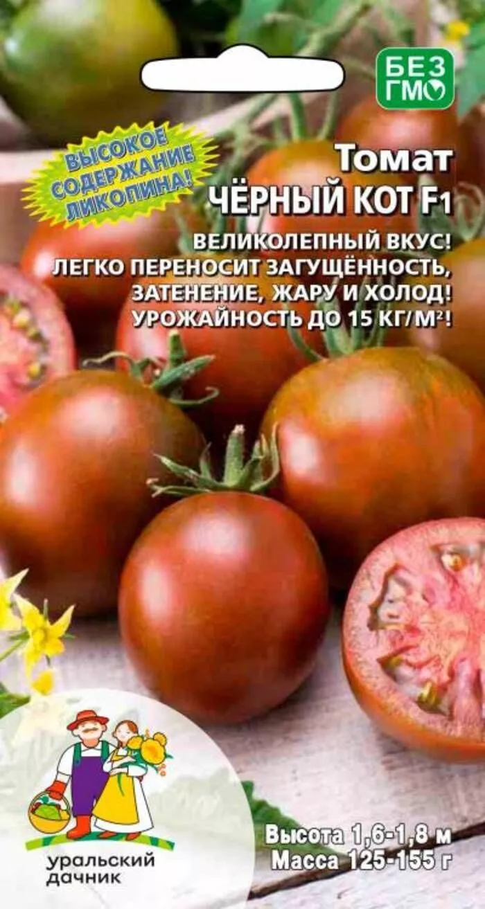 Темно-коричневый, почти шоколадный цвет зрелых плодов обусловлен высоким содержанием антоцианов — природных пигментов, обладающих антиоксидантными свойствами. Черный кот относится к группе биколоров (двухцветных томатов), где темная кожица сочетается с насыщенно-красной мякотью. Это отличает его от сортов с равномерно фиолетовой или бурой мякотью.