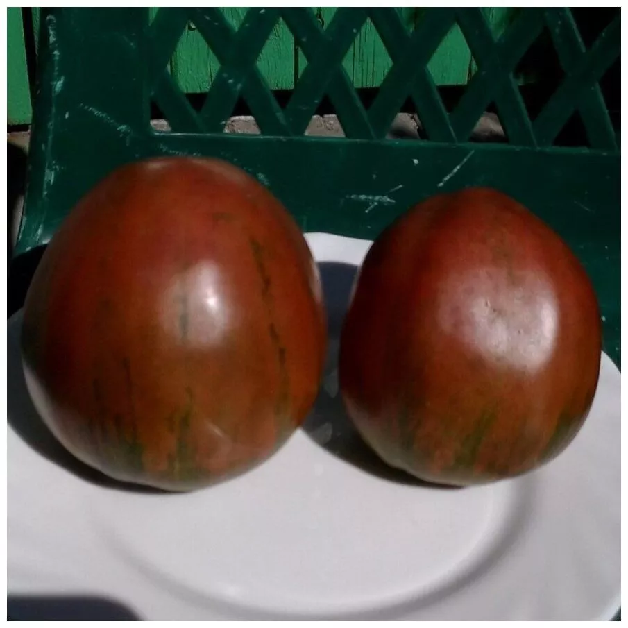 При полном биологическом созревании плод приобретает насыщенный шоколадно-пурпурный, почти черный оттенок. При этом «плечики» (область вокруг плодоножки) часто остаются зеленовато-бордовыми, что является сортовой особенностью, а не признаком незрелости. На срезе проявляется контрастная многоцветная мякоть — бархатисто-красная с изумрудными семенными камерами.