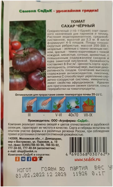 Высокая товарность плодов и значительная урожайность делают Черный сахар привлекательным не только для личных подсобных хозяйств, но и для мелкотоварного производства, где важен и внешний вид, и вкусовые качества продукции.