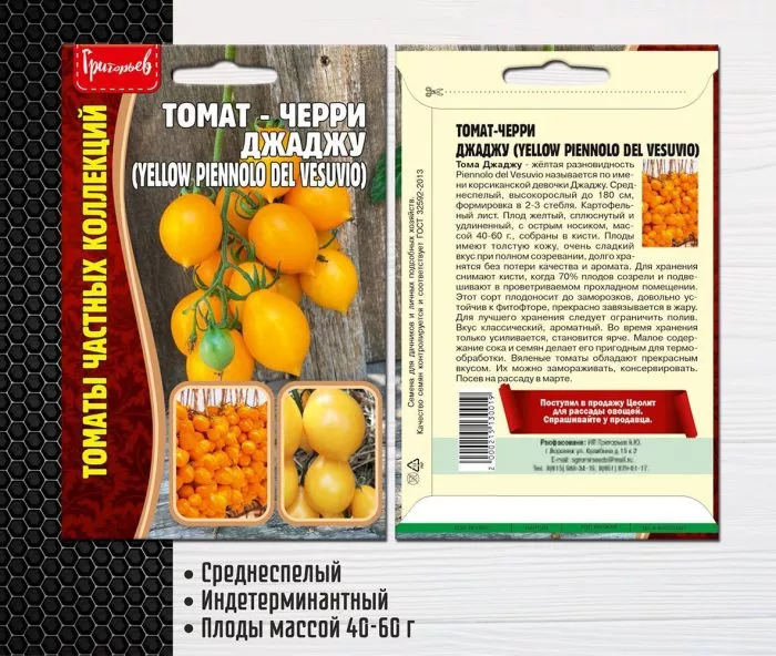 Принципиальное отличие сорта Черри Джаджу от гибридов F1 — возможность заготовки собственных семян. Семенной материал, собранный из полностью созревших плодов, будет нести все сортовые признаки: ярко-желтый цвет, вытянутую форму с носиком, сладкий вкус и индетерминантный тип роста. Это дает садоводу полную независимость от покупки семян каждый год и позволяет адаптировать сорт к местным условиям через отбор лучших растений.
