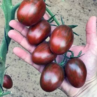 Внешний вид этого гибрида — его визитная карточка. Грядка или теплица с ним становятся не только источником урожая, но и декоративным элементом благодаря необычной окраске плодов и живописным кистям.
