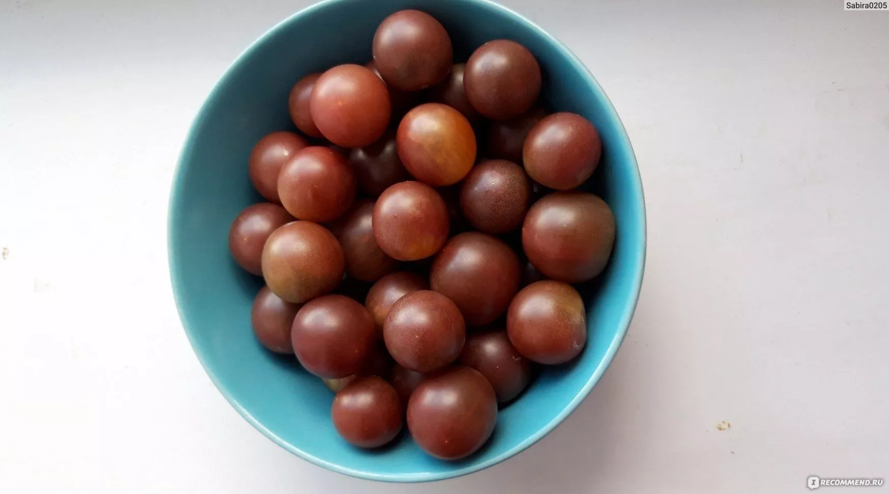 Несмотря на изменчивость куста, плоды сохраняют стабильные характеристики. Они имеют округлую, классическую для черри форму и небольшой вес, в среднем 25-35 граммов. Главная отличительная черта — глубокий бордово-коричневый окрас с характерным бронзовым отливом, который проявляется при полном созревании на солнце.