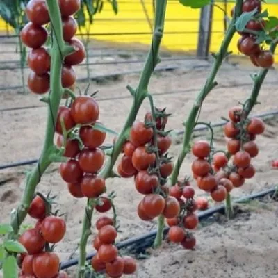 Плоды собраны в длинные, разветвленные кисти, часто по 12-15 и более штук в каждой. Такие обильные грозди, усыпанные полосатыми плодами, выглядят чрезвычайно декоративно. Кисти требуют своевременной подвязки, так как под весом многочисленных плодов могут обламываться.
