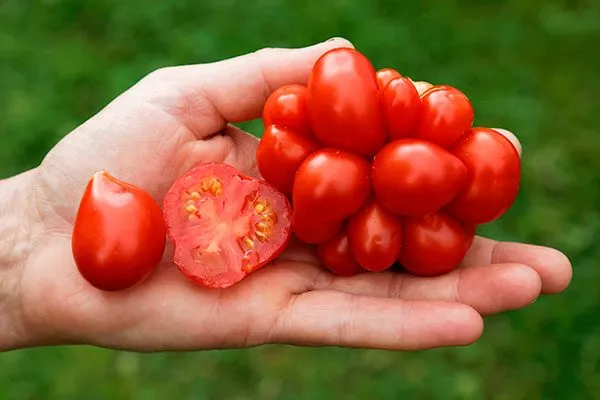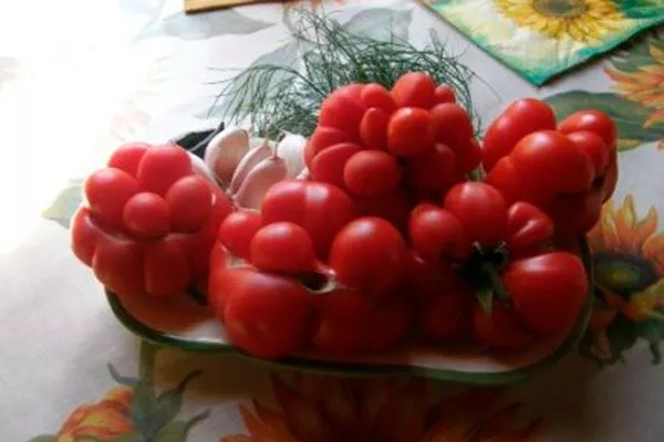 - Зрелые помидоры окрашены в насыщенный красный цвет и у них необычная конфигурация – они состоят из нескольких сросшихся сегментов, напоминающих дольки чеснока.