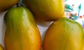 Внешний вид плодов — главная «фишка» сорта, его визитная карточка. Плоды имеют овально-вытянутую, часто сливовидную форму. Их уникальность в цвете: в состоянии полной биологической зрелости они остаются зелеными.