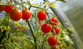 Подвязка требуется с момента высадки рассады. Стебель подвязывают к высокой шпалере или крепкому колу по мере роста. Отдельного внимания заслуживают плодовые кисти: под весом многочисленных мелких томатов они могут обломиться, поэтому их также аккуратно поддерживают с помощью подвязки или специальных кистедержателей.