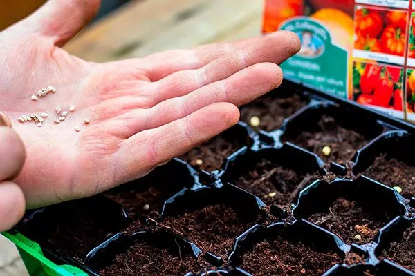 Для посева ггрунт равномерно распределяют по контейнерам, на поверхность кладут семена, затем аккуратно засыпают слоем земли толщиной 7 мм. Затем используют распылитель для увлажнения земли, контейнеры закрывают плёнкой и размещают в тёплом и светлом месте, где не будет прямых солнечных лучей.