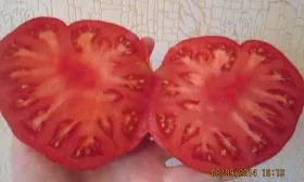 Насыщенный красный цвет равномерно распределяется по всей поверхности при полном созревании. Мякоть обладает исключительной плотностью и мясистостью, так называемой «бифштексной» структурой: на срезе она сахаристая, с минимальным количеством семенных камер и сока. Именно эта особенность — высокое содержание сухих веществ — определяет превосходные вкусовые качества и основное кулинарное назначение.