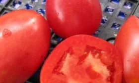 Мякоть мясистая, плотная, с малым количеством семян и семенных камер. Такая структура, характерная для многих сливовидных сортов, обеспечивает высокое содержание сухих веществ, что напрямую связано со сладким, насыщенным вкусом плодов. Сочетание плотной текстуры и яркого вкуса делает эти томаты универсальными: они одинаково хороши для свежих салатов и для всех видов переработки.