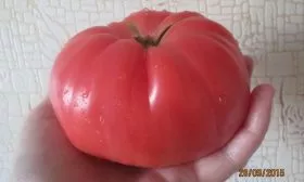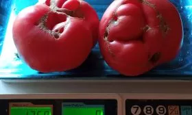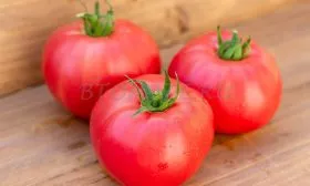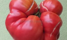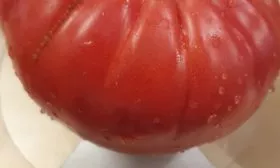 Плоды имеют характерную плоскоокруглую форму, часто с выраженной ребристостью в области плодоножки. При полном созревании окраска становится равномерной, насыщенно-красной. Внутреннее строение соответствует типу «биф» (beefsteak).