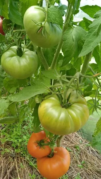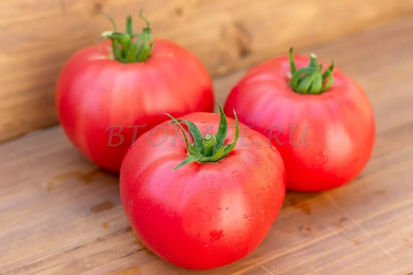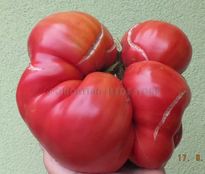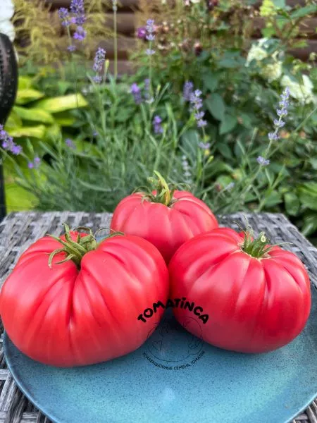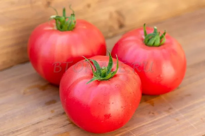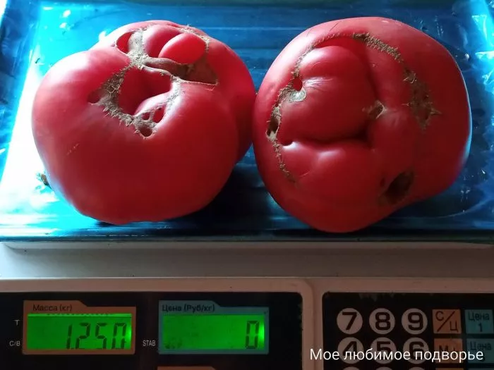 Плоды имеют характерную плоскоокруглую форму, часто с выраженной ребристостью в области плодоножки. При полном созревании окраска становится равномерной, насыщенно-красной. Внутреннее строение соответствует типу «биф» (beefsteak).
