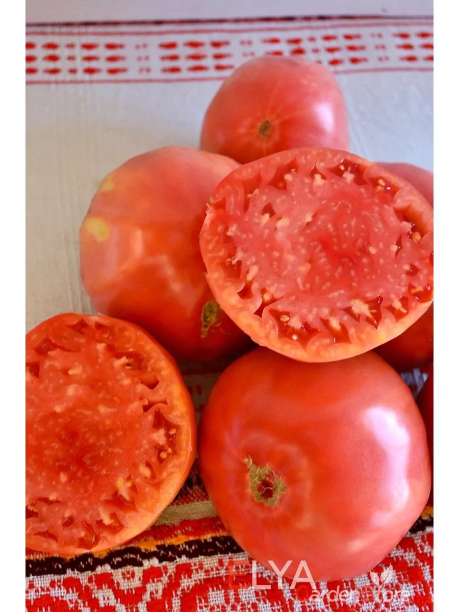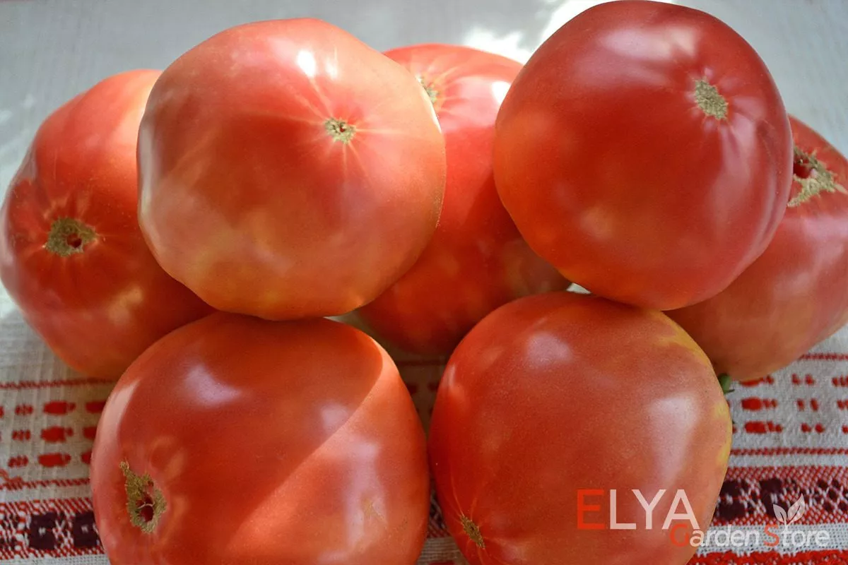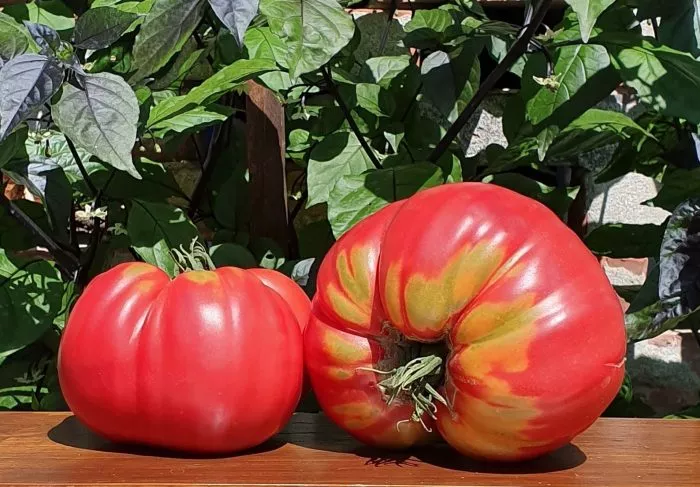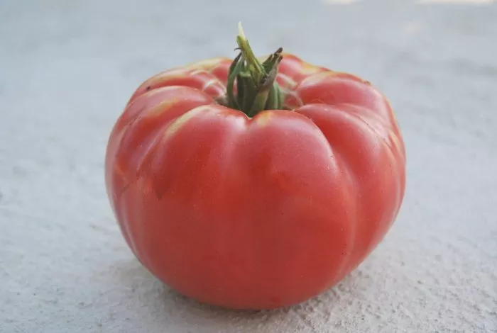 Плоды имеют ярко выраженную плоскоокруглую форму, часто с заметной ребристостью у плодоножки. Эта ребристость — типичный признак так называемых биф-томатов, к которым относится данный сорт. Основное назначение таких плодов — свежее потребление и переработка на соки и соусы.