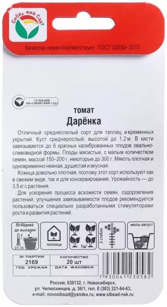 Эта компания имеет устойчивую репутацию в разработке сортов и гибридов, которые хорошо приспособлены к непростым и переменчивым погодным условиям многих областей России. При создании Даренки селекционеры ставили перед собой задачу получить не просто урожайный, а максимально адаптивный сорт.