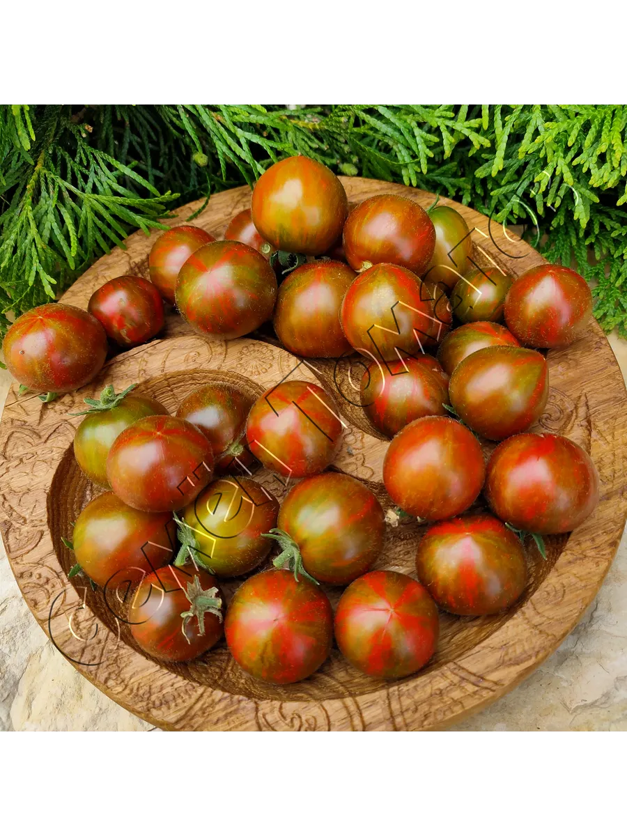 Основное назначение этих томатов, согласно характеристикам, — употребление в свежем виде. Их сладкий вкус с выраженными пряными нотками и сочная мякоть максимально раскрываются без какой-либо кулинарной обработки. Небольшие, массой 15-35 граммов, плоды удобны для использования в детском рационе, в качестве полезного снека или для украшения блюд, где их кирпично-красная с темно-зелеными полосками окраска создает яркий акцент.