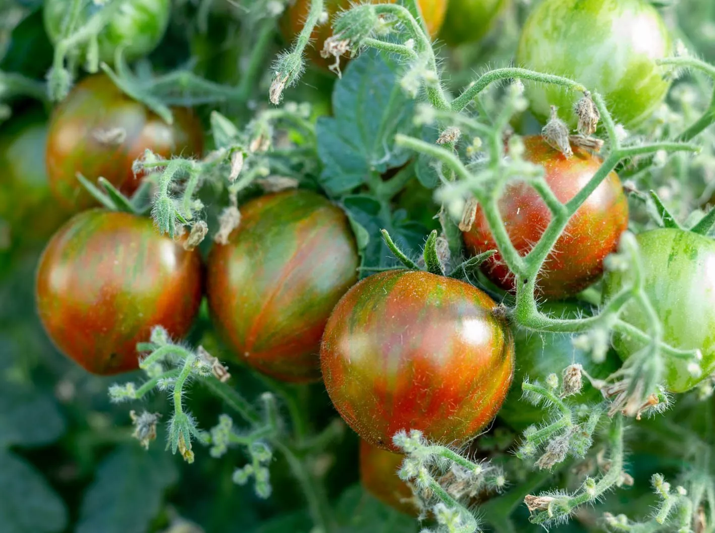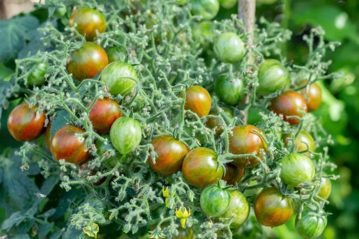 Плод, достигший своего окончательного размера (15-35 граммов) и начавший демонстрировать характерную полосатую расцветку, уже можно снимать с куста для дозаривания (дозревания в помещении). Не стоит ждать, пока все полосы равномерно покраснеют на растении.