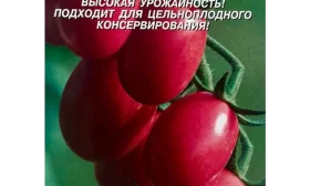 Компактная форма и средний размер плодов (50-70 г), их плотная кожица и мякоть — это не случайные признаки. Именно такая комбинация делает сорт идеальным для цельноплодного консервирования: помидоры не растрескиваются при термической обработке, сохраняют форму и аппетитный вид в банке. При этом сбалансированный вкус позволяет использовать их и для свежих салатов.