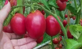 Мякоть мясистая, плотной консистенции, с небольшим количеством семенных камер. Вкус гармоничный, сбалансированный, где ощутимая сладость сочетается с легкой, приятной кислинкой, характерной для классических томатов. Плоды собраны в простые кисти, в каждой из которых может формироваться от 8 до 10 и более последовательно созревающих помидорок.