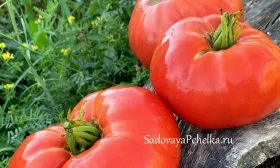 Плоды — главная отличительная черта сорта. Их плоскоокруглая форма с хорошо выраженной ребристостью у плодоножки — классический признак «биф-томатов». В состоянии полной биологической спелости они приобретают равномерный, насыщенный красный цвет без зеленого пятна у основания.