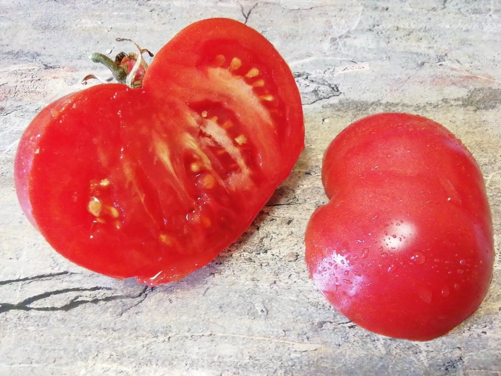 Мякоть очень плотная, многокамерная и исключительно мясистая, с так называемым сахаристым изломом. Семенных камер и самих семян внутри немного. Кожица имеет среднюю плотность: она надежно защищает плод от растрескивания при грамотном поливе и обеспечивает достаточную для крупноплодного томата транспортабельность, не создавая ощущения жесткости.