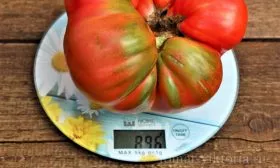 Плоды имеют характерную плоскоокруглую форму, часто с заметной ребристостью у плодоножки. Главная отличительная черта – их выдающаяся масса. Сорт стабильно формирует томаты весом 300-700 граммов, что является его сортовой нормой, а не редким исключением.