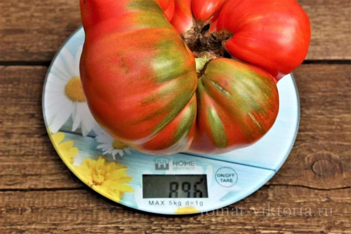 Плоды имеют характерную плоскоокруглую форму, часто с заметной ребристостью у плодоножки. Главная отличительная черта – их выдающаяся масса. Сорт стабильно формирует томаты весом 300-700 граммов, что является его сортовой нормой, а не редким исключением.