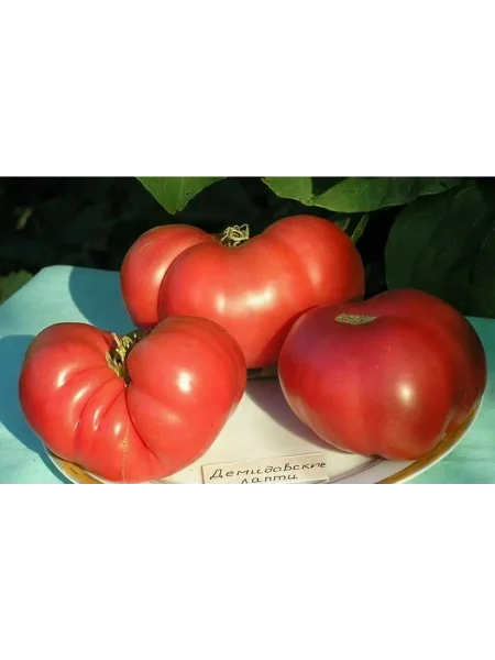 Название сорта носит яркий образный характер и напрямую связано с внешним видом плодов. Часть «Демидовские» отсылает к известной династии промышленников, символизируя нечто солидное, основательное и качественное. Вторая часть, «лапти», точно описывает характерную форму помидора: плоскоокруглую, заметно приплюснутую сверху и снизу, что визуально напоминает традиционную плетеную обувь.