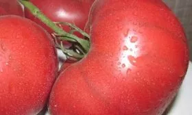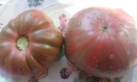Форма плодов плоскоокруглая, часто с выраженной ребристостью в области плодоножки, что типично для крупноплодных томатов. Размер и масса плодов на одном кусте могут значительно варьироваться, от 300 до 500 граммов, причем первые завязи на нижних кистях нередко бывают самыми крупными.
