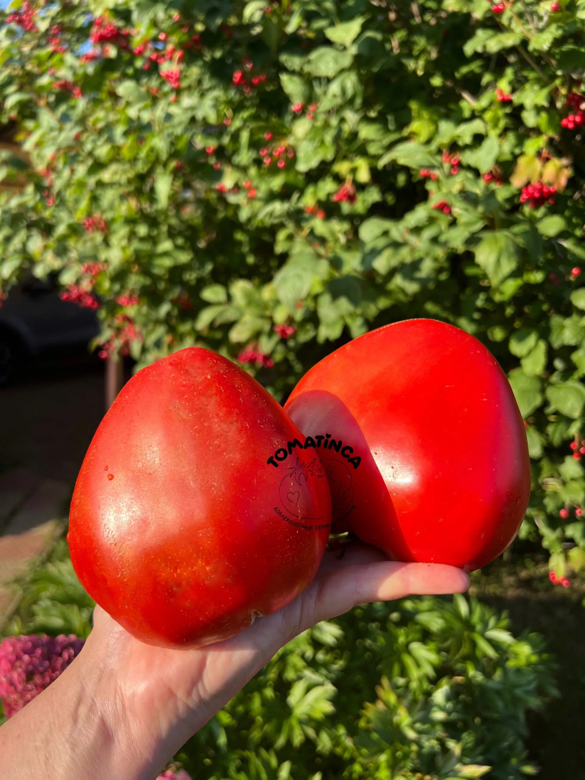 Главная отличительная черта сорта — его плоды. Их форма точно соответствует описанию «сердцевидная»: основание широкое и округлое, а вершина вытянута в хорошо выраженный, иногда слегка изогнутый «носик». Такая форма делает помидоры очень узнаваемыми.