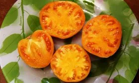 Яркий золотисто-оранжевый цвет мякоти сигнализирует о высоком содержании бета-каротина — провитамина А. Это делает плоды особенно ценными для диетического и детского питания. Тонкая кожица и почти полное отсутствие пуриновых кислот в мякоти являются причиной хорошей переносимости этого сорта людьми с аллергией на классические красноплодные помидоры.