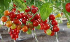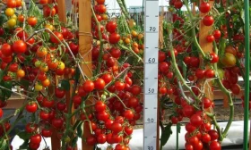 Компактный, но мощный куст с обильными кистями небольших, идеально ровных плодов — вот характерный портрет этого гибрида, который легко узнаваем на грядке или в теплице.