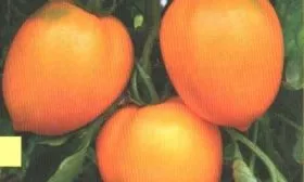 Плоды — ключевая отличительная черта сорта. Их яркая оранжевая окраска обусловлена высоким содержанием каротиноидов, в частности бета-каротина. Форма классическая яйцевидная, часто с выраженным аккуратным носиком на вершине. Плоды выровненные, со средней массой 130 граммов, что идеально соответствует заявленному назначению для консервации.