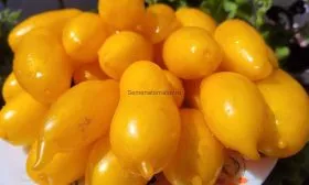 Окрас зрелых томатов сложный и нарядный. Основной цвет — теплый желто-оранжевый, по которому проходят контрастные золотисто-желтые продольные полосы. Такой рисунок проявляется по мере созревания и делает каждую кисть похожей на гирлянду. Плоды выровненные, с средней массой 80-90 граммов, что обеспечивает равномерность приготовления. Они формируются в простые или промежуточные кисти, что в сочетании с ультраранним сроком созревания позволяет получать первые яркие «гирлянды» одними из первых на участке.