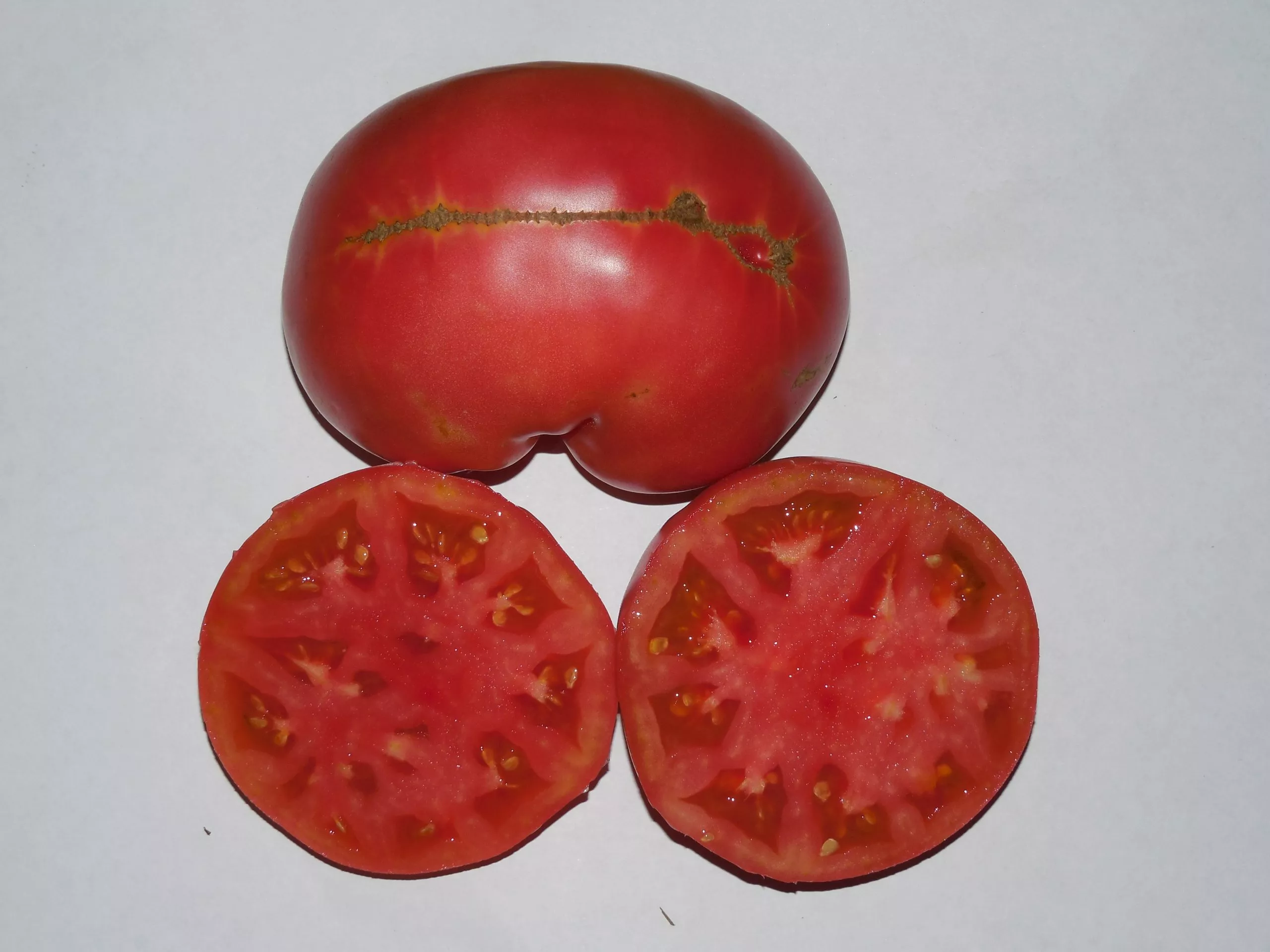 | Форма плода | Плоскоокруглая | Часто имеет выраженную ребристость у плодоножки. Плоды первых кистей самые крупные и ребристые. |