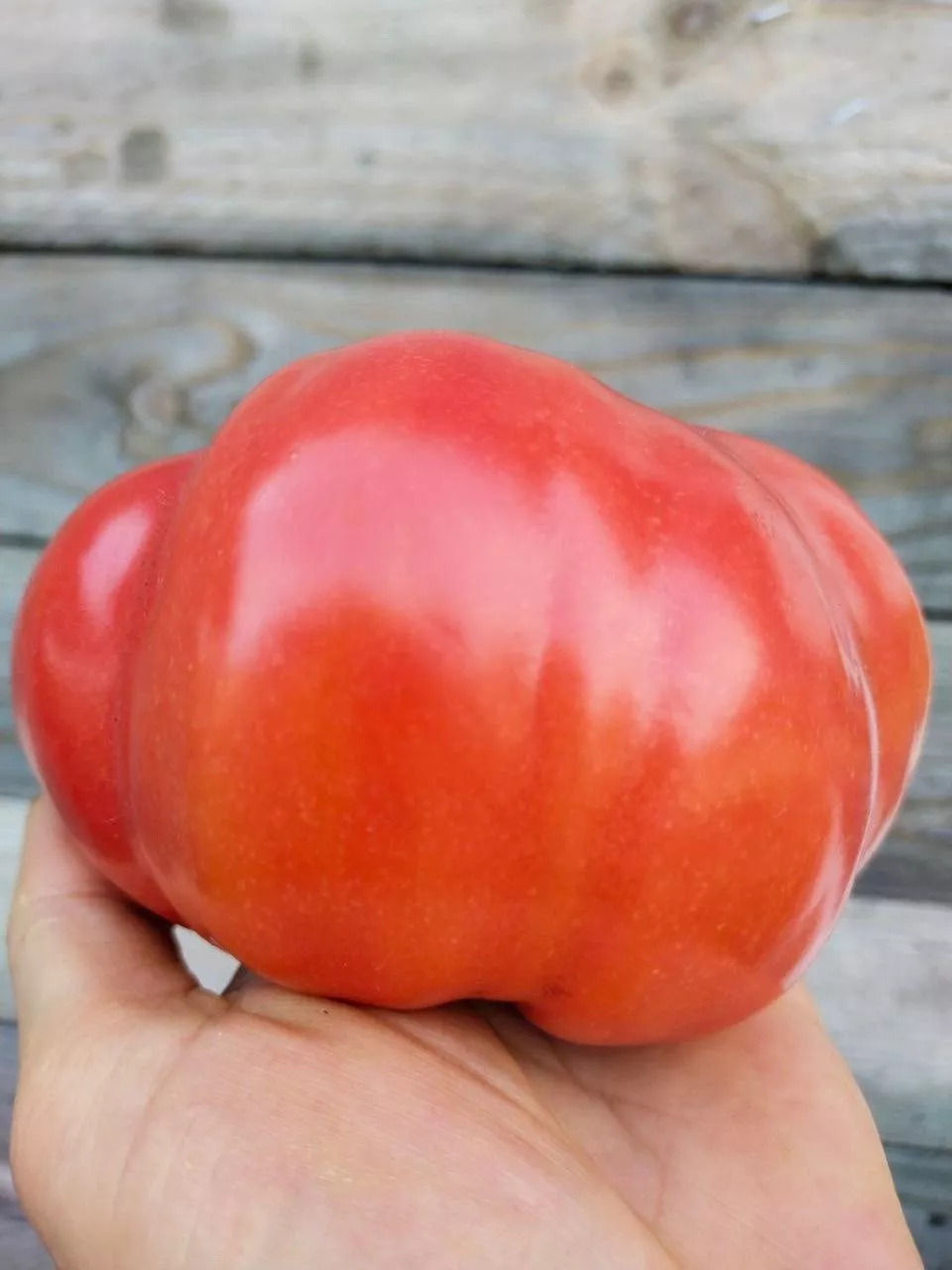 В полной биологической спелости томаты приобретают насыщенный красный цвет. Кожица тонкая, но плотная, что в сочетании с мясистой структурой позволяет крупным плодам относительно устойчиво переносить перепады влажности без растрескивания. Однако для длительной транспортировки и хранения они не предназначены.