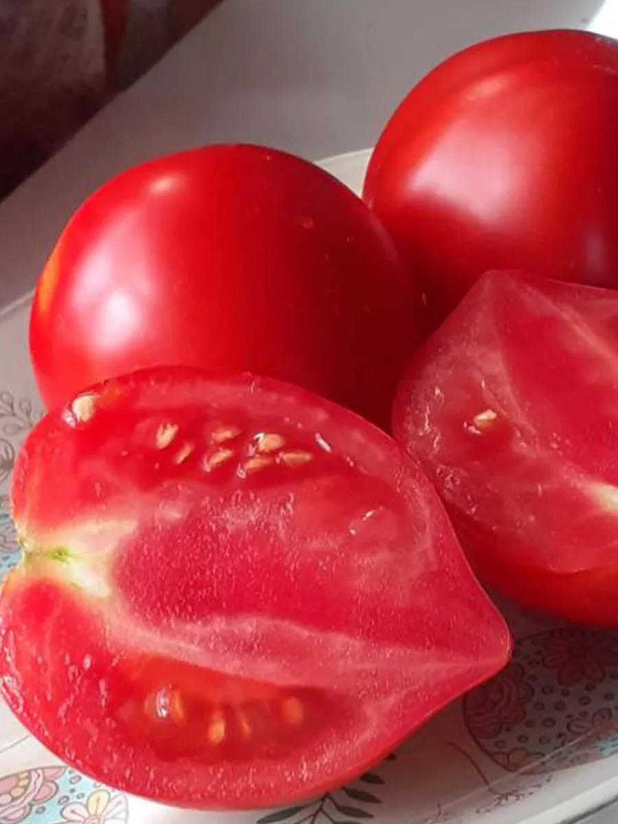 Мякоть у зрелых плодов мясистая, сочная, с гармоничным вкусом, в котором чувствуется характерная для хороших томатов сладость с легкой, приятной кислинкой. Такое сочетание плотной кожицы и насыщенной мякоти делает урожай универсальным в использовании.