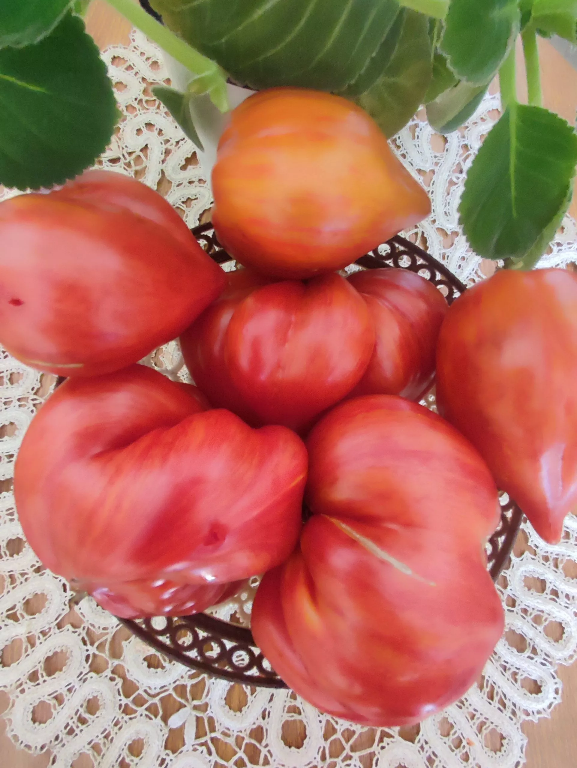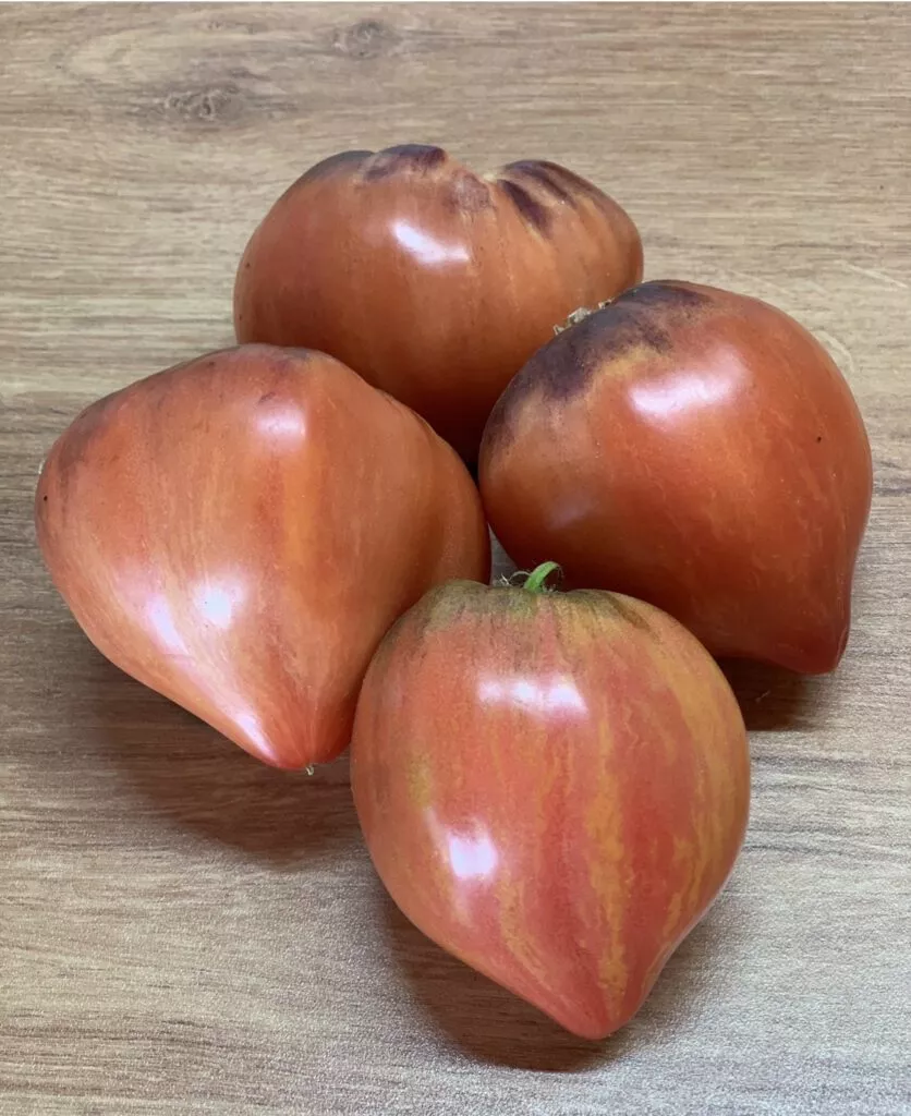 Если снять томаты бурыми, они успешно дозариваются в теплом помещении. Однако важно помнить, что сахаристость и интенсивность окраски при таком подходе будут несколько ниже, чем у созревших на ветке. Крупный размер и сердцевидная форма с острым кончиком делают плоды уязвимыми к механическим повреждениям при сборе, поэтому снимать их нужно аккуратно, с плодоножкой.