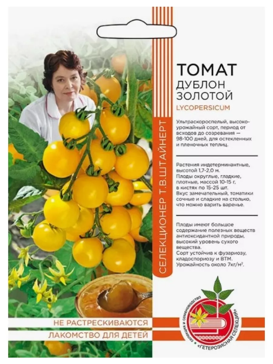 Сорт томата Дублон золотой является результатом отечественной селекции и официально включен в Государственный реестр селекционных достижений Российской Федерации. Этот факт подтверждает, что сорт прошел многолетние государственные испытания на соответствие заявленным характеристикам, включая урожайность, устойчивость и качество плодов.