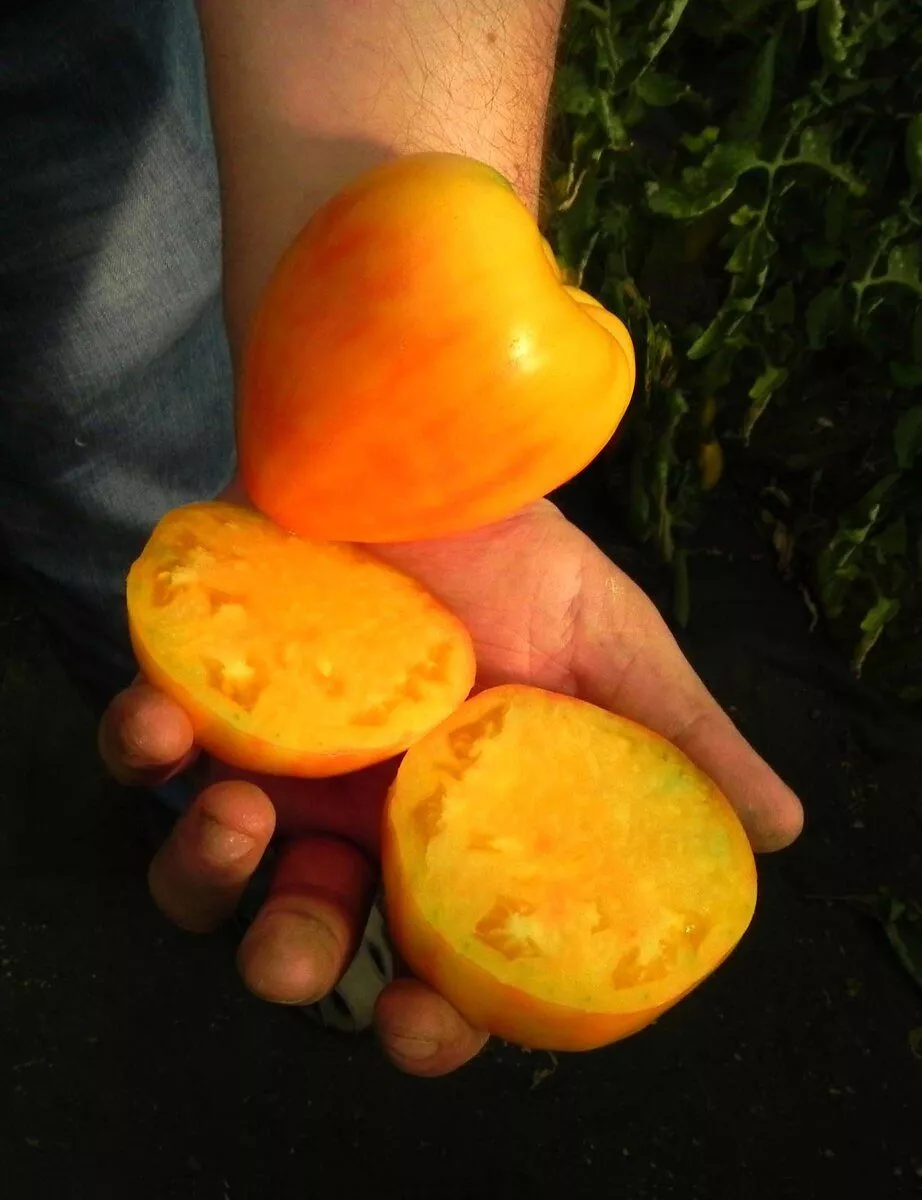 Мякоть очень мясистая и нежная, с высоким содержанием сухих веществ, что визуально проявляется в ее сахаристости на изломе. Плоды многокамерные, но количество семян в них невелико, что является общей чертой гибридов первого поколения (F1).