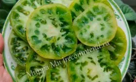 Окраска зрелого томата — желто-зеленая. Это не признак незрелости, а стабильный сортовой признак. Такой цвет кожицы сигнализирует о высоком содержании хлорофилла и может указывать на пониженное содержание аллергенов, характерных для красноплодных сортов, что является дополнительным преимуществом для некоторых потребителей.