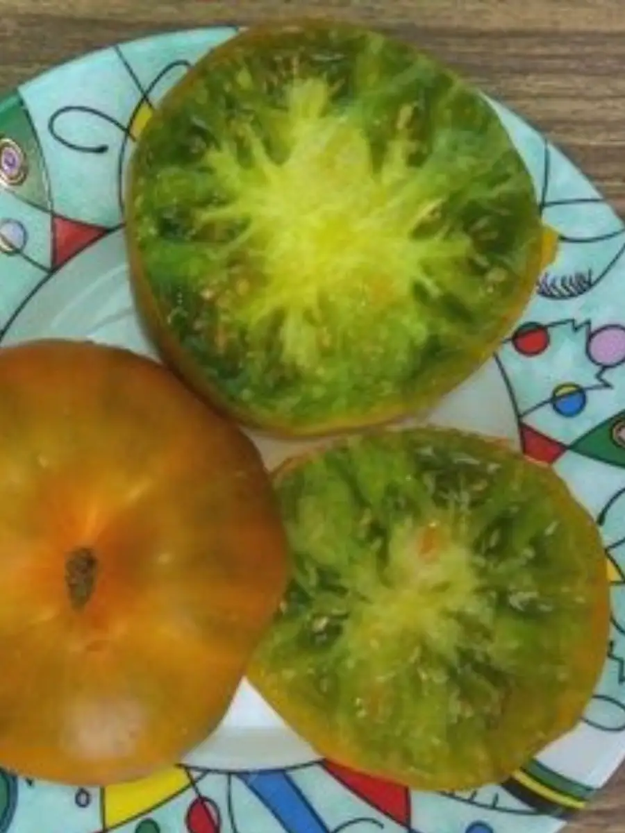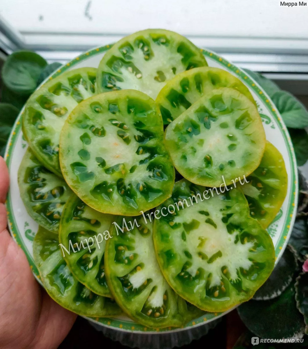 Окраска зрелого томата — желто-зеленая. Это не признак незрелости, а стабильный сортовой признак. Такой цвет кожицы сигнализирует о высоком содержании хлорофилла и может указывать на пониженное содержание аллергенов, характерных для красноплодных сортов, что является дополнительным преимуществом для некоторых потребителей.