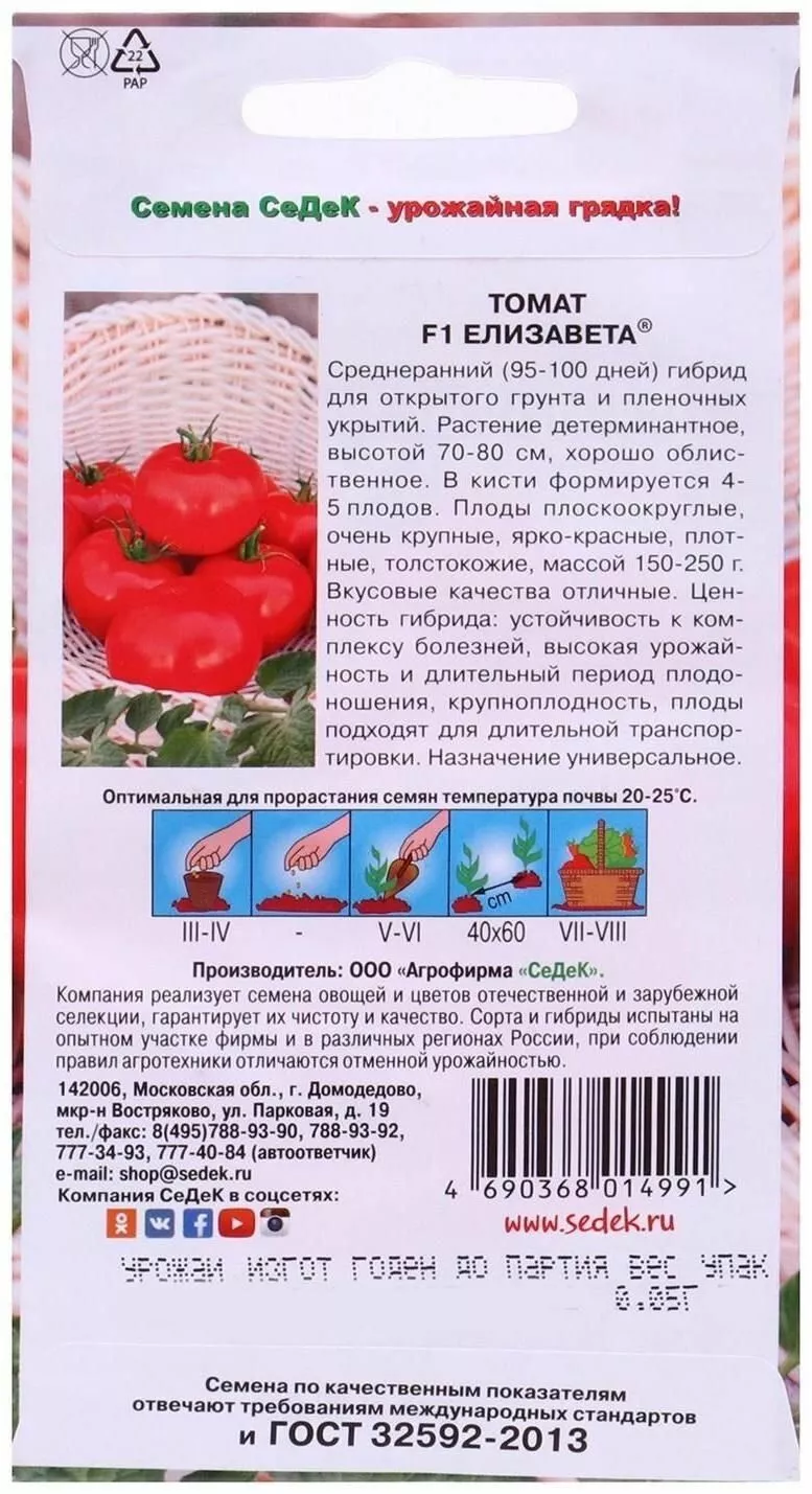 Включение томата Елизавета в Государственный реестр селекционных достижений РФ является официальным подтверждением его сортовых качеств, стабильности и безопасности. Регистрация означает, что гибрид прошел многолетние государственные испытания, в ходе которых были проверены и подтверждены все его заявленные характеристики, включая урожайность, сроки созревания и устойчивость к заболеваниям.